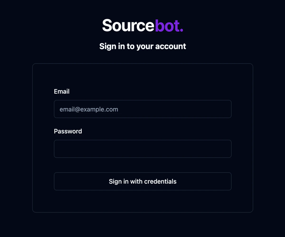 When you visit your new deployment you’ll be presented with a sign-in page. Sourcebot now requires authentication, and all users must register and sign-in to the deployment.The first account that’s registered will be made the owner. By default, you can register using basic credentials which will be stored encrypted within the postgres DB connected to Sourcebot. Check out